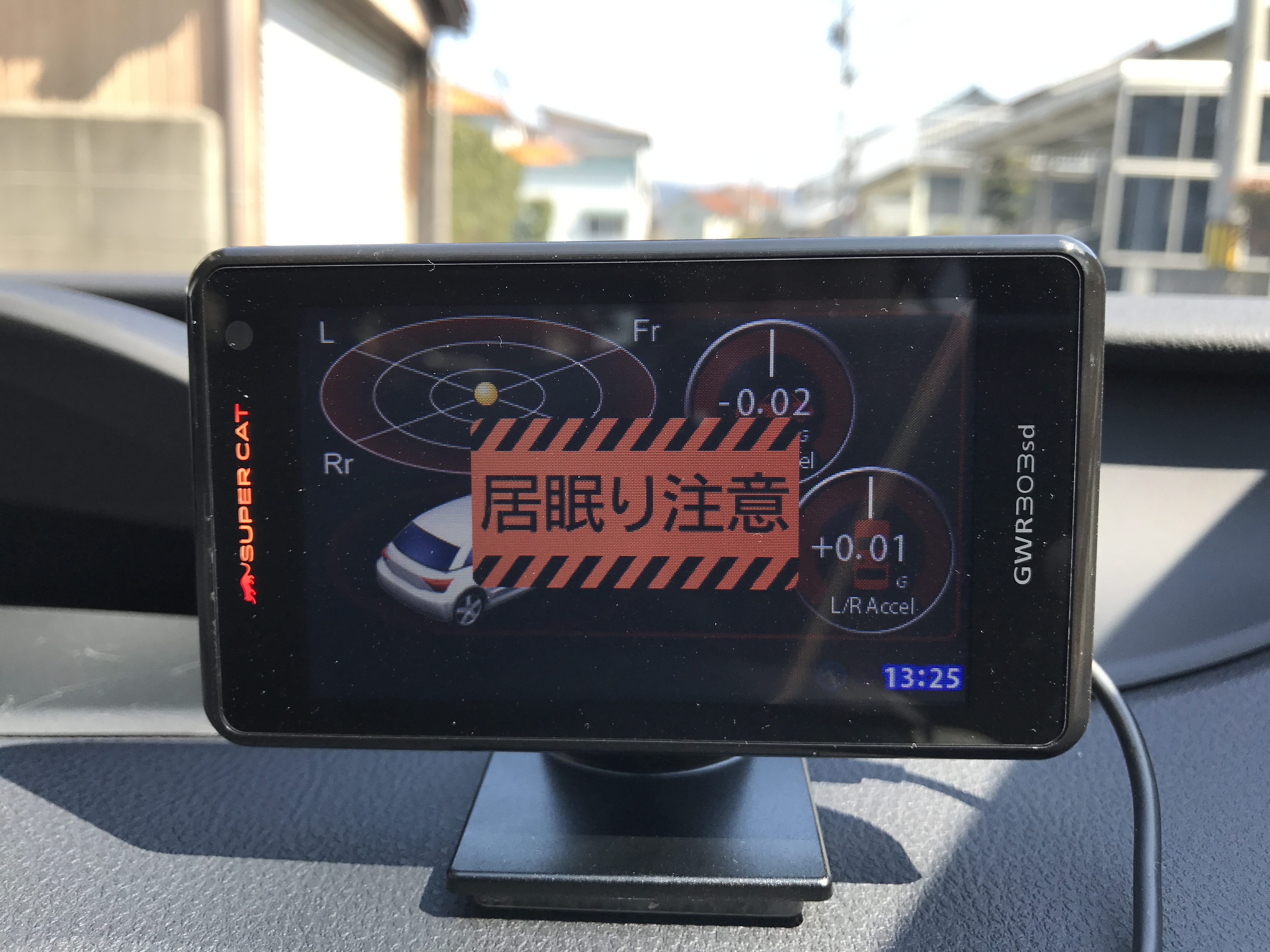 ↑前車に異常接近した時は上の写真の様にレーダー探知機画面に画像が出て”キンコンキンコン”警報音が鳴りお知らせしてくれる。